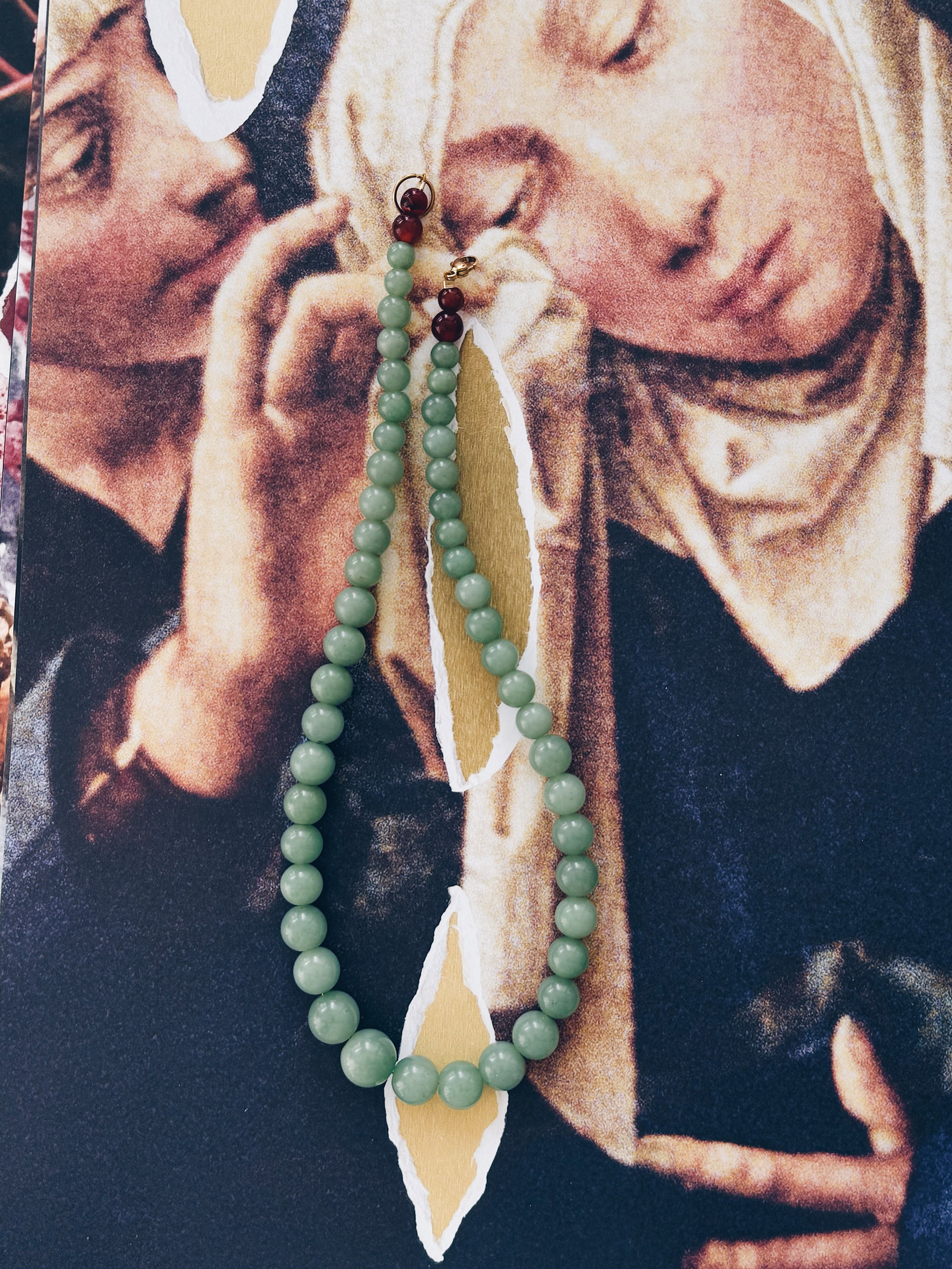 Lækreste vintage halskæde i fine lysegrønne sten perler fra Paris, kombineret mintgrønne sten perler. I stand sat med ny wire, lås og tilsat et par ekstra fine perler så længden blev bedre.