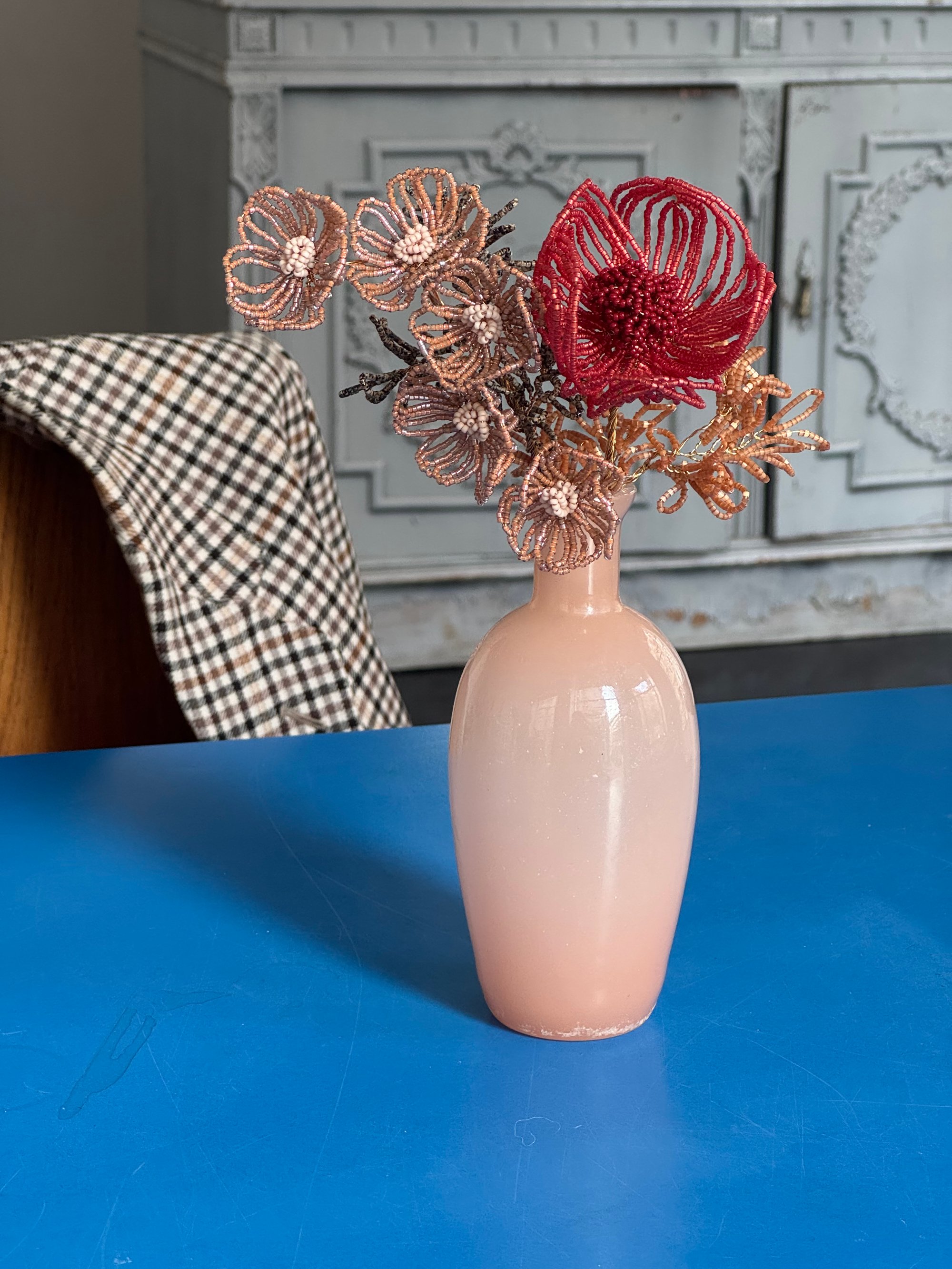 Mænge er meget forskellig, alt efter størrelse på den blomst man laver, men håber ovenstående giver en hurtig lille fornemmelse af hvor mange perler du skal bruge.