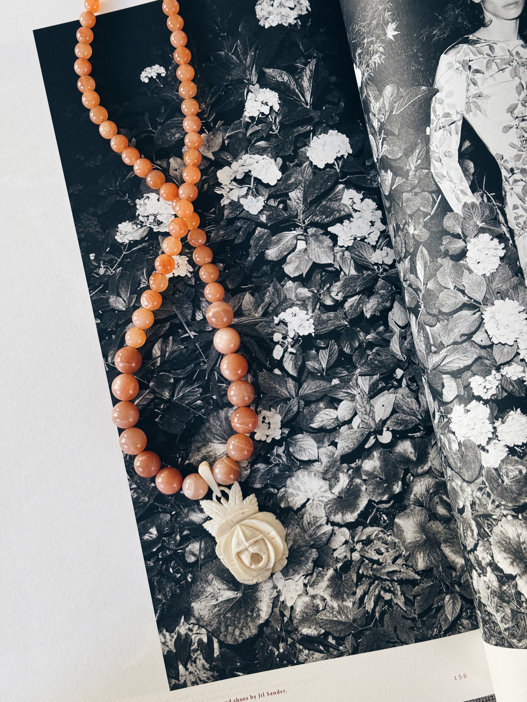 Lækreste halskæde af sten perler fra Paris og vintage ben vedhæng.