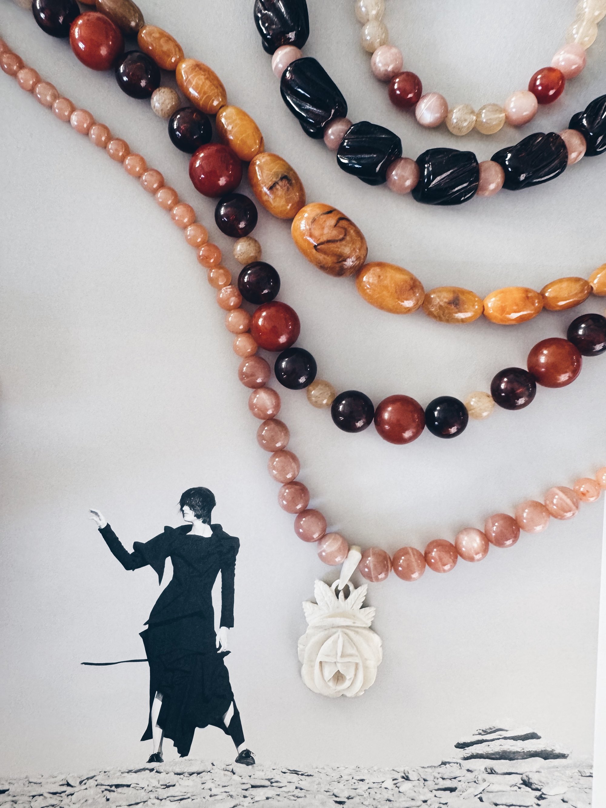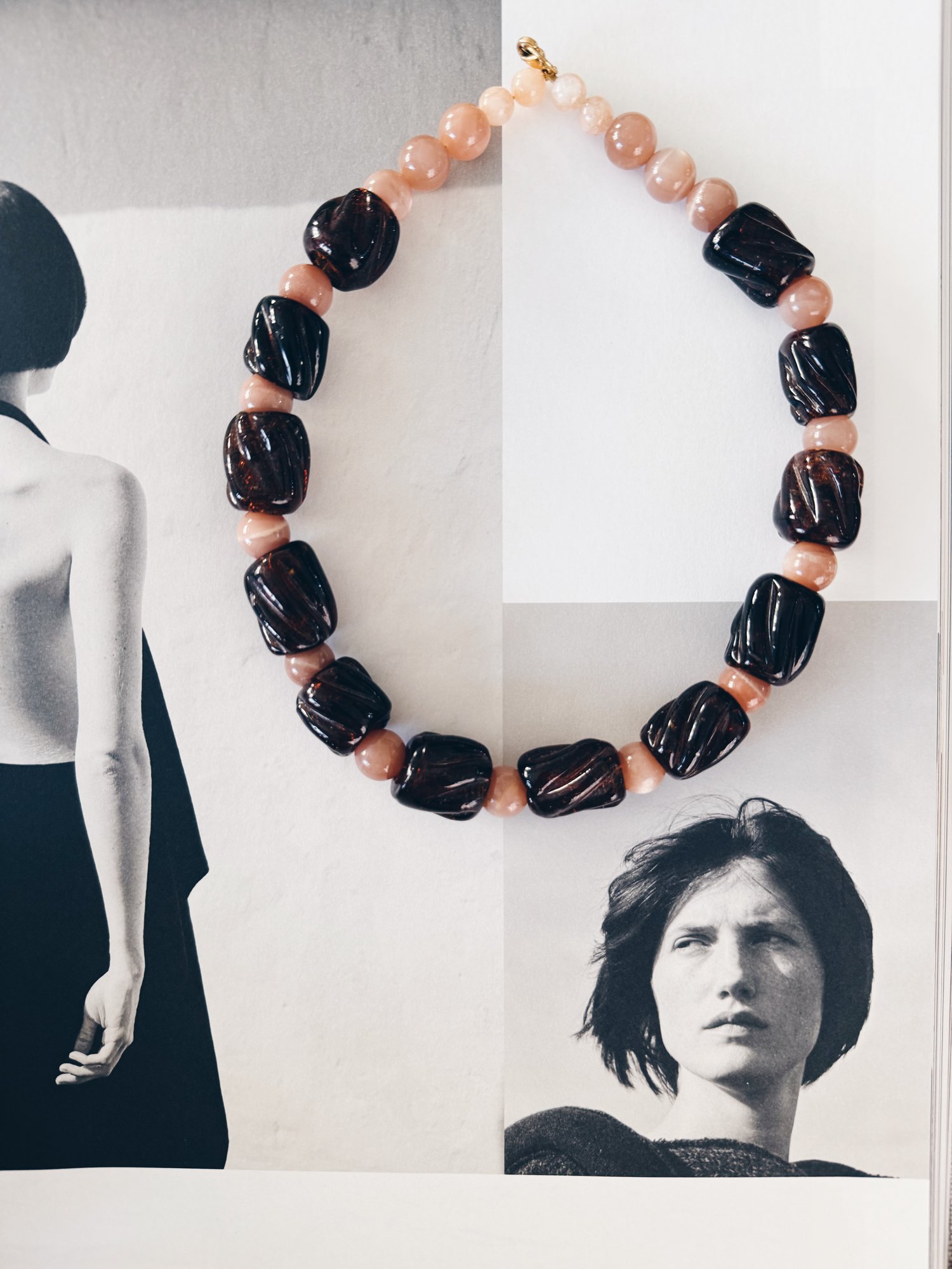 Lækreste halskæde af sten perler fra Paris, kombineret med store smukke vintage glas perler. Enkel og markant uden at være dominerende.