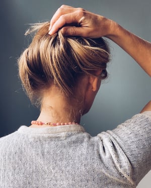 _Vil hænge lidt på en smal hals og sidde tættere på en bredere hals, på begge sidder den virkelig fint. Ønsker du en anden længde kan du skrive det i kommentar feltet, du kan også altid få den tilrettet efterfølgende.