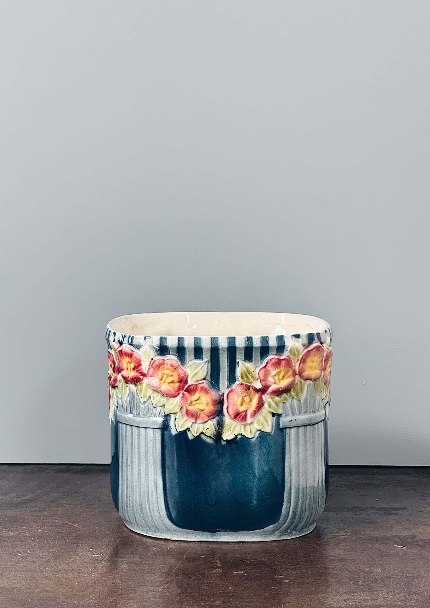 Smuk majolica potte i særlig lækre farver. 14 cm høj. 15 cm i diameter.