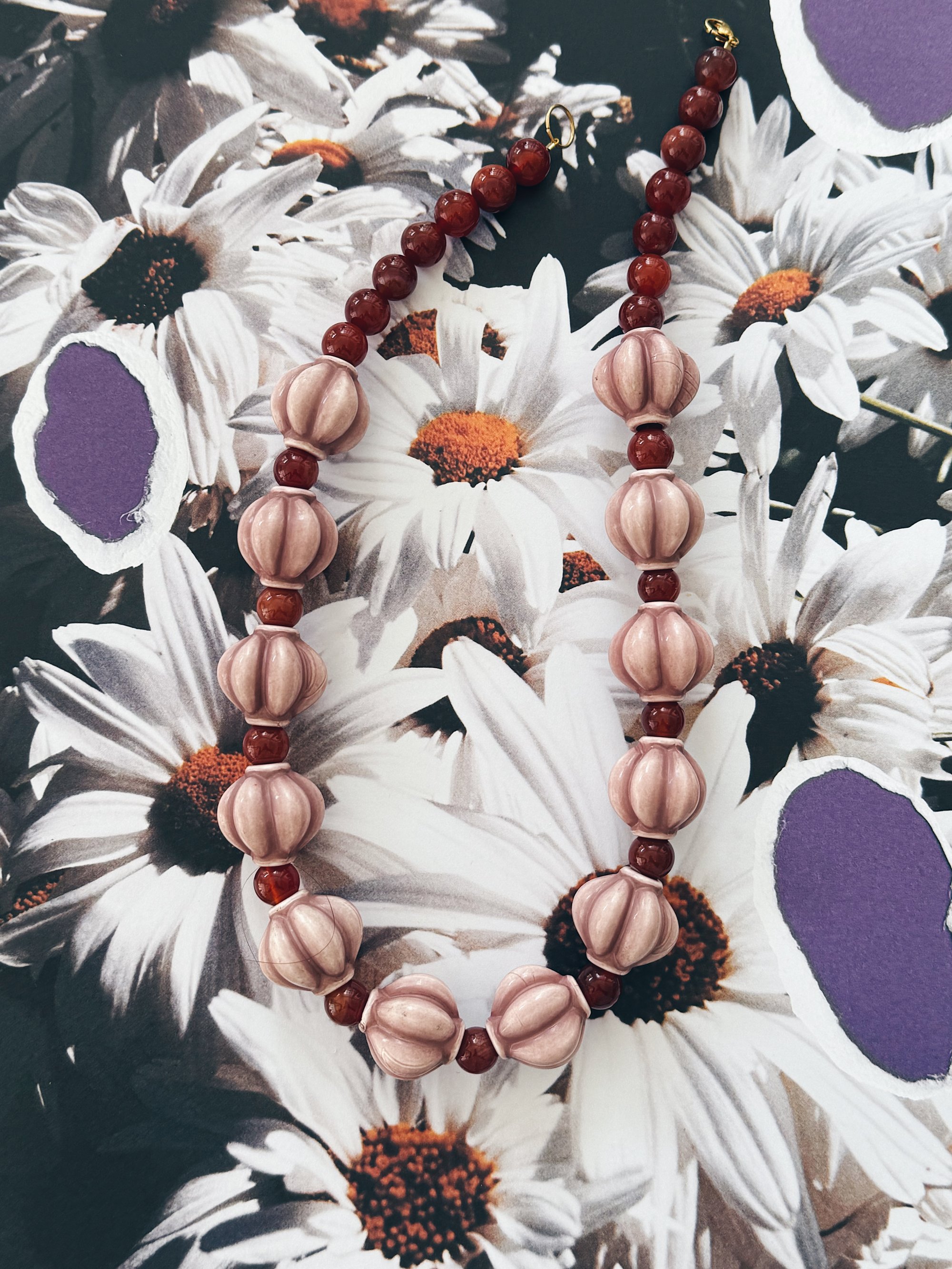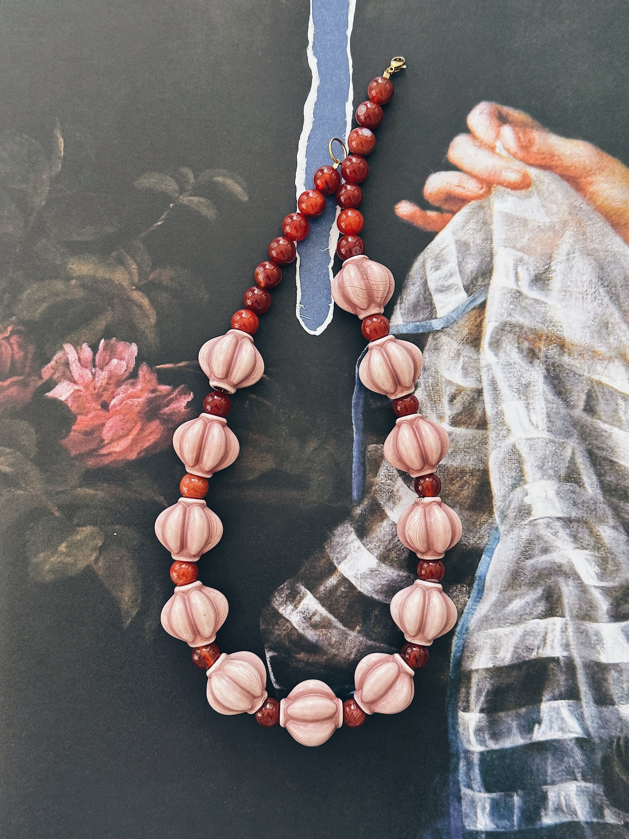 Lækreste halskæde af rosa vintage perler fra Paris, kombineret natursten sten perler. Enkel og markant uden at være dominerende.