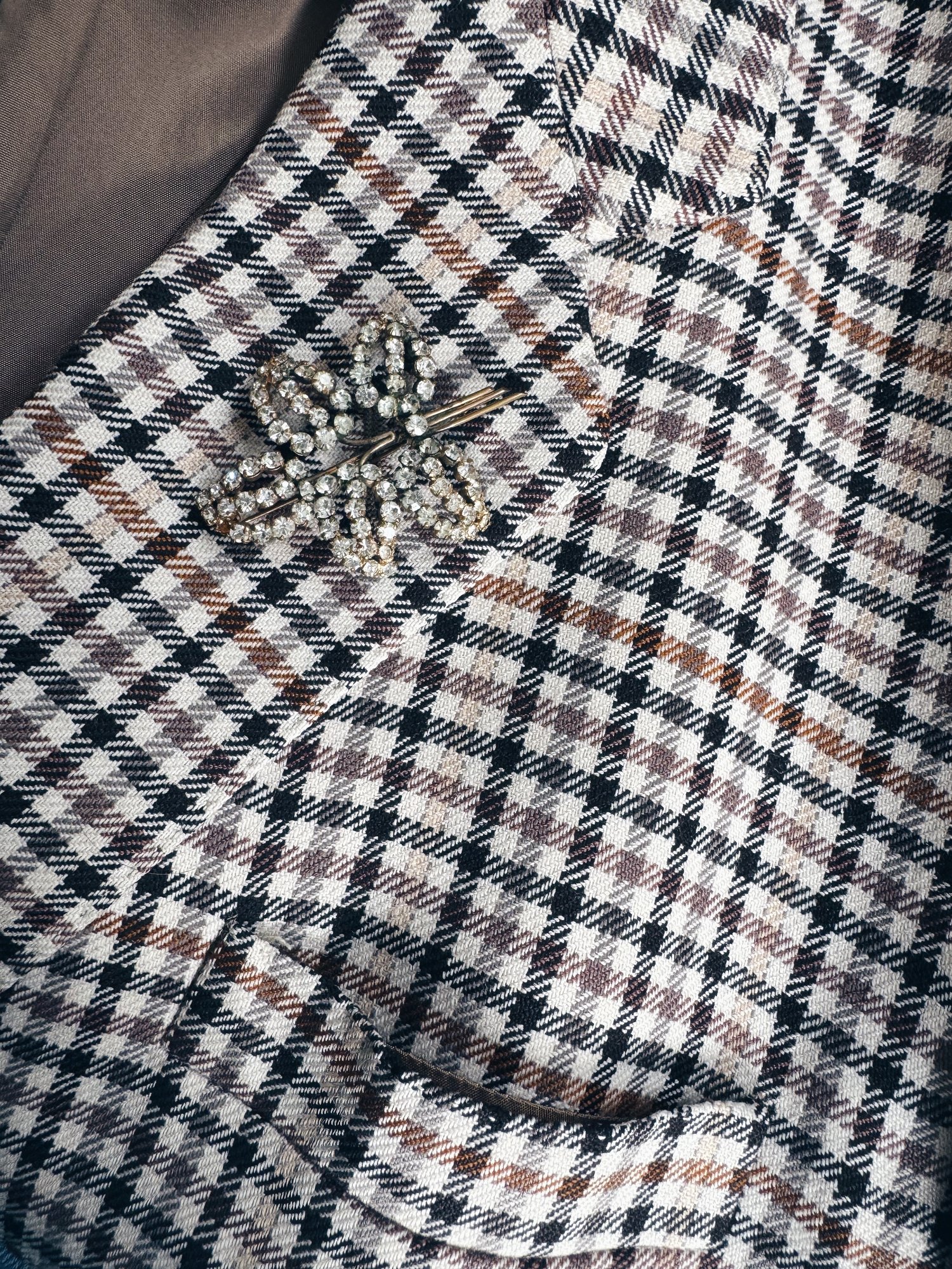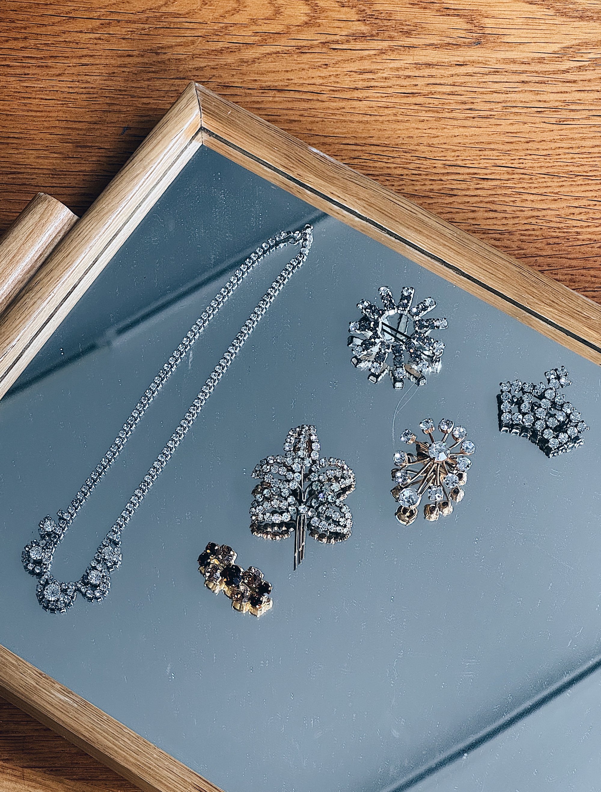 Finest delikate broche fra 30-40’erne i spejlglas. Så smuk vintage detalje der kan sætte prikken over et hvert sæt tøj.